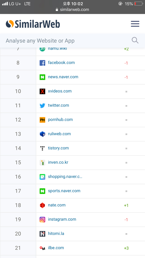 그 위에는 디씨, 인벤, 루리웹이 있구요...