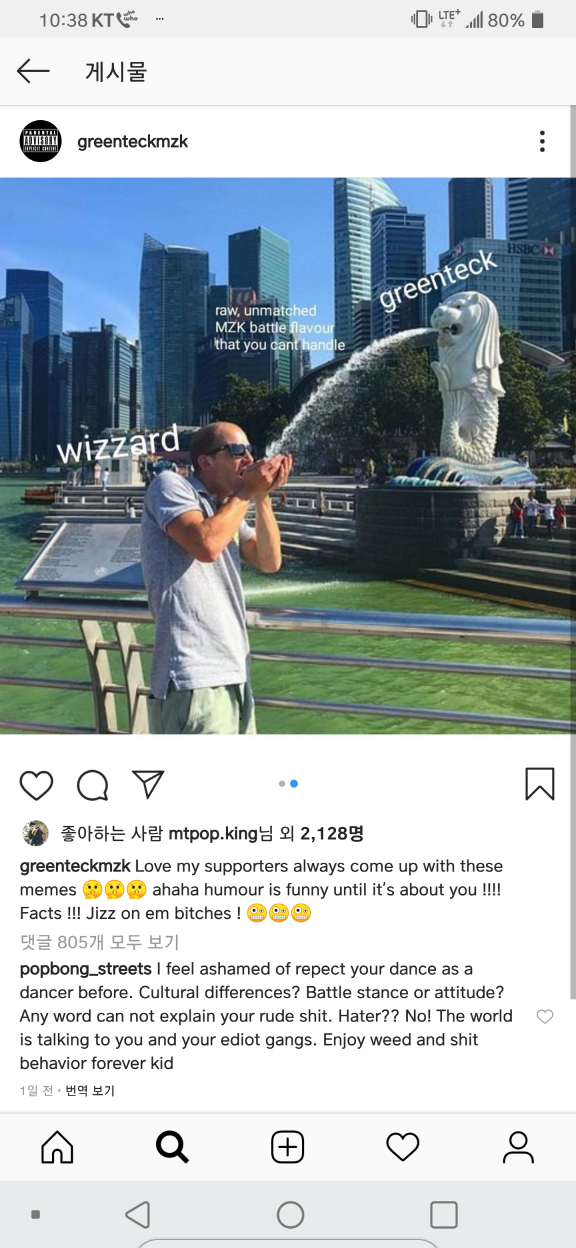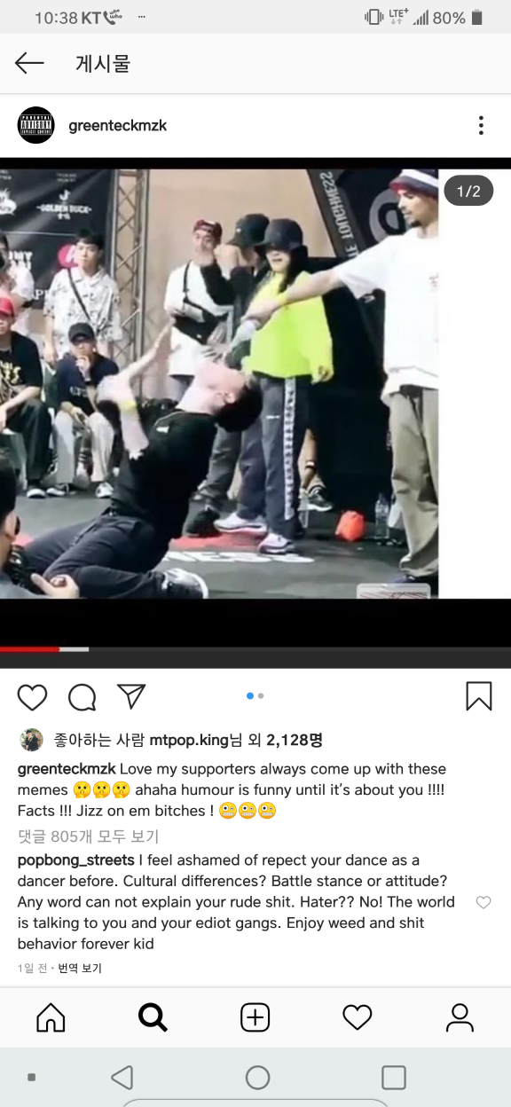 국내 탑 댄서들인 도균, 팝봉, 투탓, 호진, Lip J 등이 비난 댓글을 올렸으나 호진, Lip J 의 댓글을 삭제해 버리고 블락.