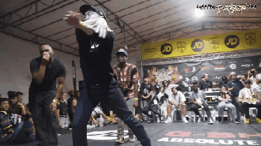 국내 유명 왁킹 댄서 Wizzard 가 신나게 춤을 추고 있는데 팝핑 리빙 레전드 Greentek 이 아래처럼 Wizzard의 얼굴에 물을 뿌리고