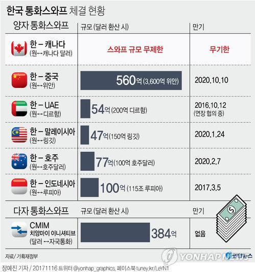 한국은 2017년 11월에 캐나다와 기한과 한도가 없는 무제한 통화협정을 맺었다는 점입니다.