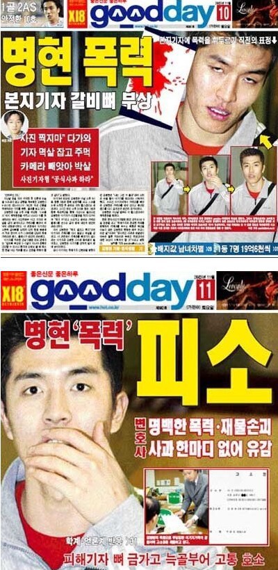 굿데이뉴스라는 군소 스포츠지 기자가 막무가내로 운동중인 김병현한테 카메라 들이밀면서 인터뷰 신청하다가