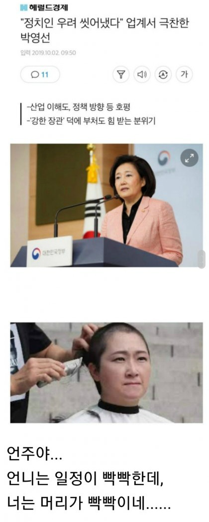 [스크랩] 2020년에도 계속되는 언주야 언니는 시리즈 (new) 작성자청순가련|작성시간20.01.15|조회수4,330 목록 댓글 22 글자크기 작게가 글자크기 크게가 언주야~ 언니는 평창이야~언주야~ 스파씨바~언니는 러시아왔어~언주야~ 언니는 장관이고~ 너는 가관이고~언주야~ 많이 덥지?언니는 시원하단다~언주야~ 언니는 완판이고~ 너는 개판이고~언주야~ 언니는 시상하고~ 너는 이상하고~*** 박영선 장관이 돈 먹여서 KBS 연기대상에 시상하러 나왔다는 가짜뉴스 돌던데4선 의원 출신 장관 잘못 건드리면 호적에 빨간줄 그어진다는 거 잊지 말자 ^^ *** 다음검색 스크랩 원문 : 젠틀재인 - 문재인과의 동행 현재 게시글 추가 기능 열기 북마크 공유하기 신고 센터로 신고 댓글 댓글 22 댓글쓰기 답글쓰기 댓글 리스트 작성자흑비 | 작성시간 20.01.15 장관 가관 ㅋㅋㅋㅋ 작성자슬기❤️ | 작성시간 20.01.15 겁나 얄미움 ㅋㅋㅋㅋㅋ 작성자성격장애 | 작성시간 20.01.15 라임은 보통 쩐다 라고 하는데 이건 개얄밉네요 ㅋㅋ 작성자sp13 | 작성시간 20.01.15 와씨ㅋㅋ 언주야 언니는 일정이 빡빡한데 너는 머리가 빡빡이구나에서 빵터졌습니다ㅋㅋㅋㅋ 작성자Cool_Guy | 작성시간 20.01.16 문재인 후보시절 내부총질러였다는 사실ㅎㅎㅎ 댓글 전체보기