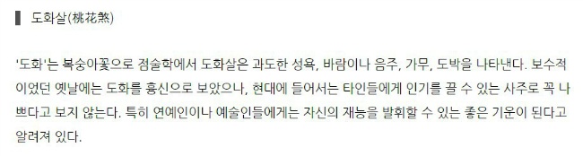 복숭아꽃(도화桃花) 이라는 좋은 어감에 극악의 어감인 살(煞)이 조합된 것이