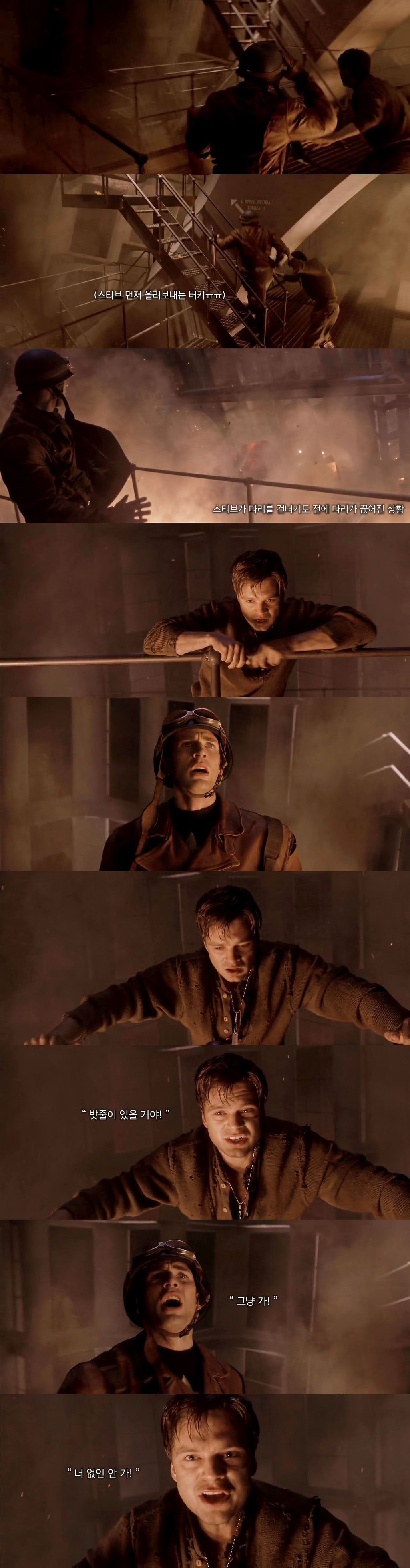 버키는 스티브를 홀로 보내고 싶지 않았기에 전쟁터로 돌아갑니다.