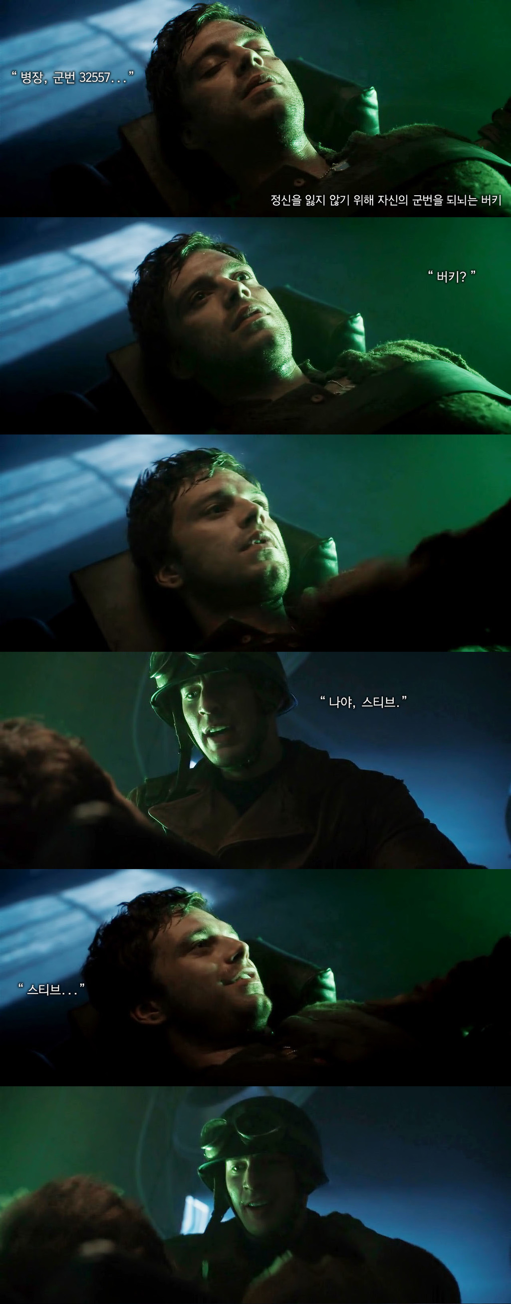 버키는 처음 하이드라에게 잡혀 고문과 실험을 당했을 때