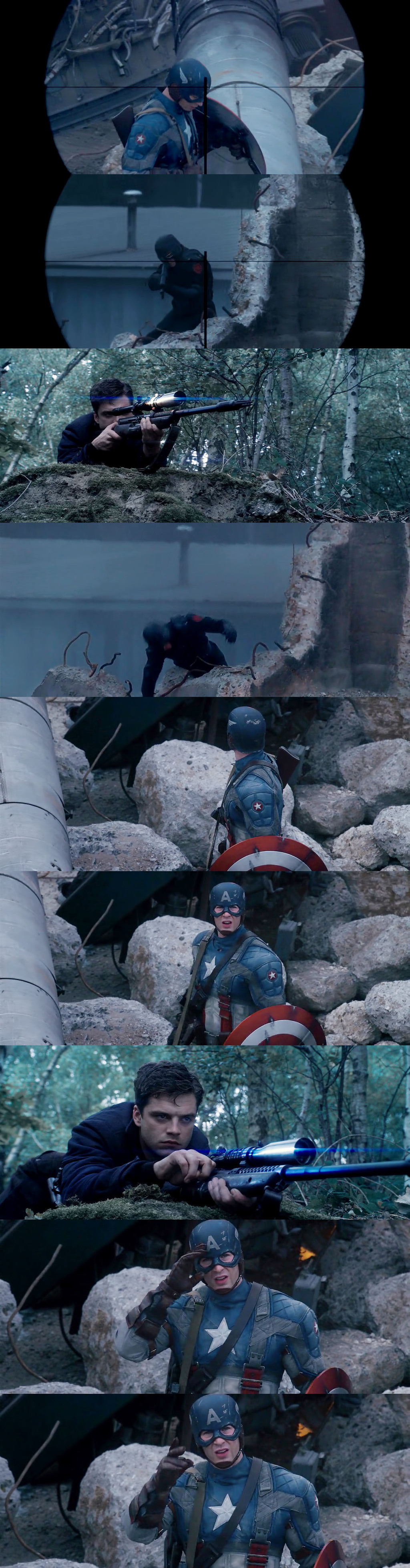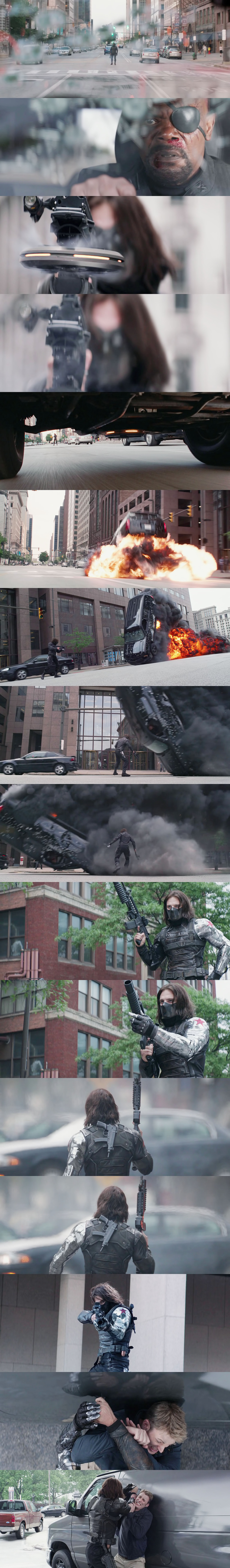 버키와 스티브가 공격해오는 하이드라와 맞서 싸우고 있을 때