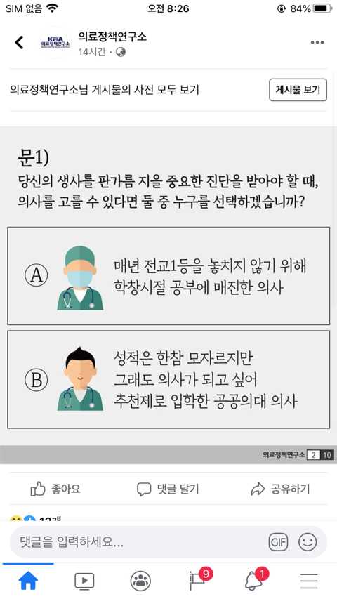 14시간 전에 대한의사협회 의료정책연구소에서 페북에 올린 게시물입니다.