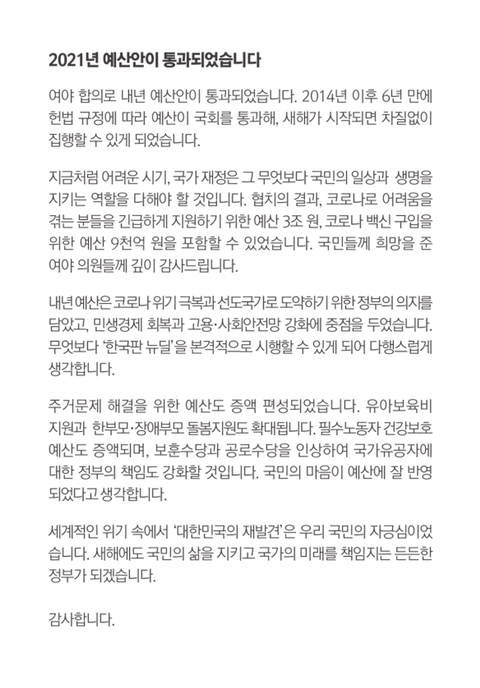 작성자sang장 작성시간 20.12.03 작년 이전과 비교하면 법령 개정도 착착 진행되고 있고 예산도 가장 쉽게 통과되었죠. 일단 의석을 많이 점유한 것도 크지만 언론과 야당이 추미애만 잡고 늘어져서 예산이나 법개정에 발목 잡을 여력이 없어요. 덕분에 국회와 정부가 잘 돌아가고 있는 중이죠.