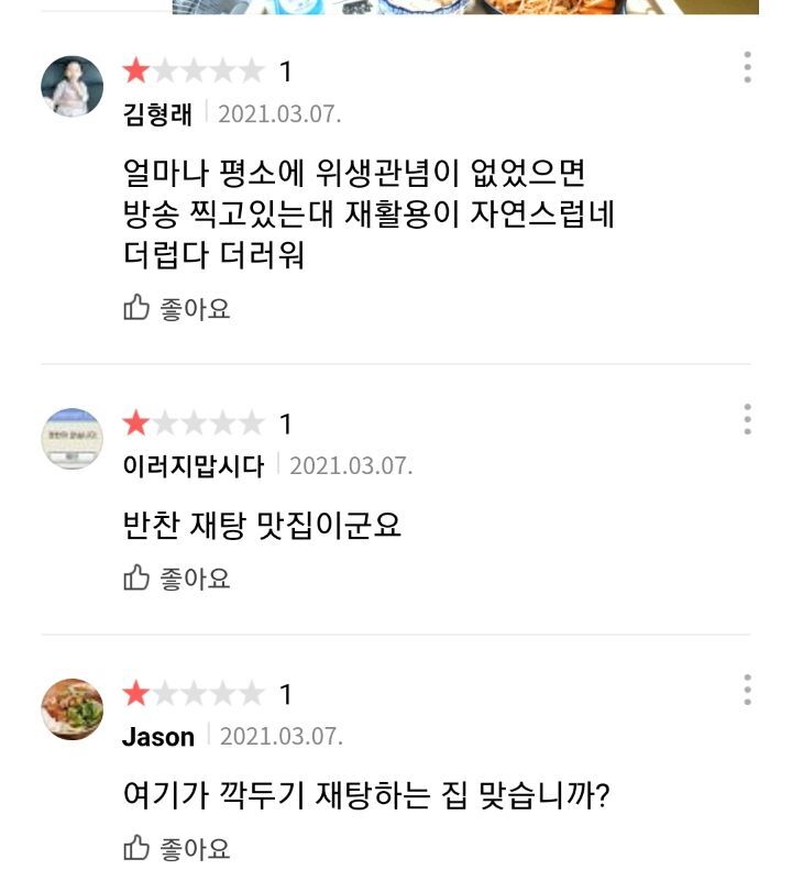 반찬 재탕 하는거 딱걸림