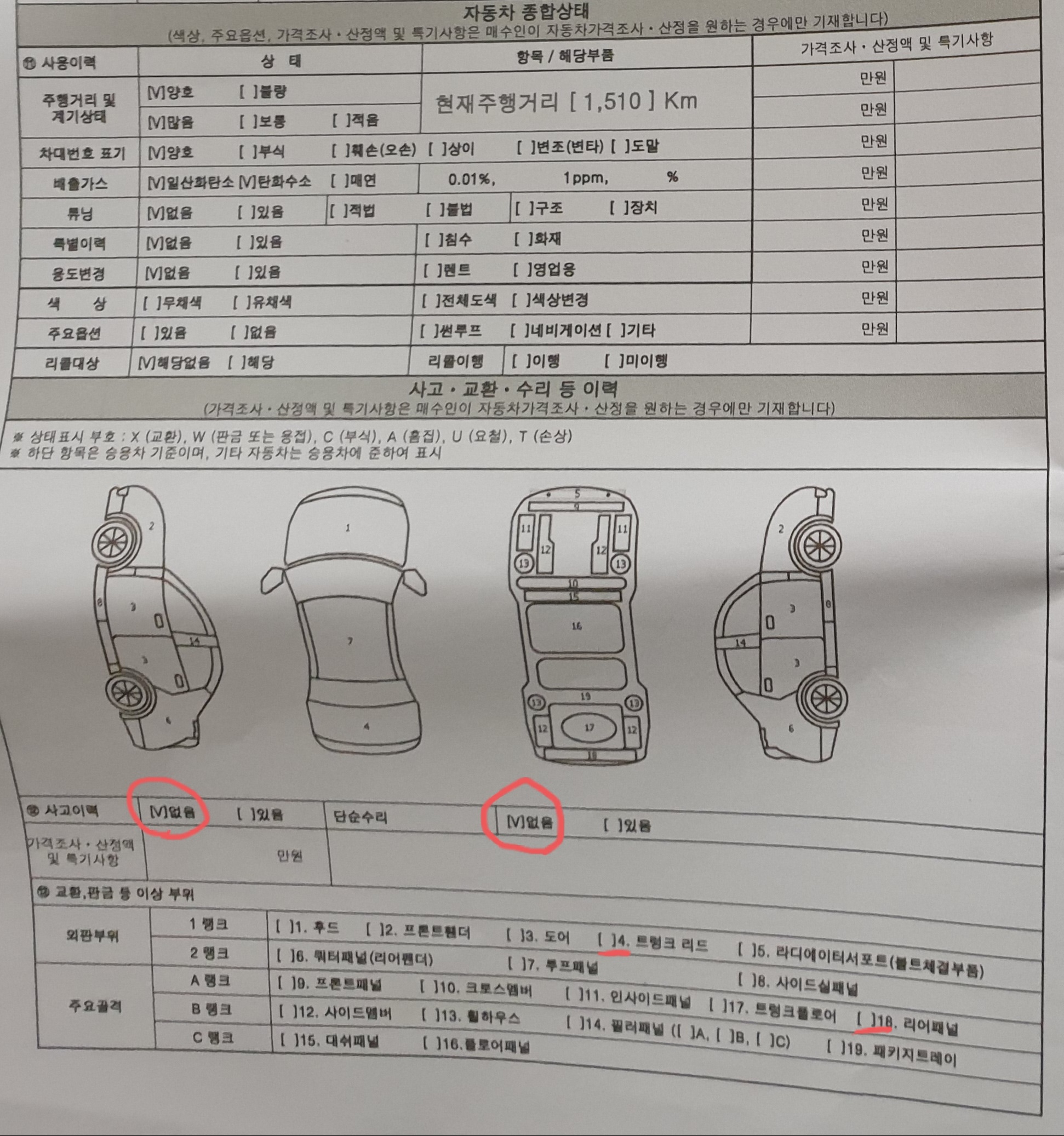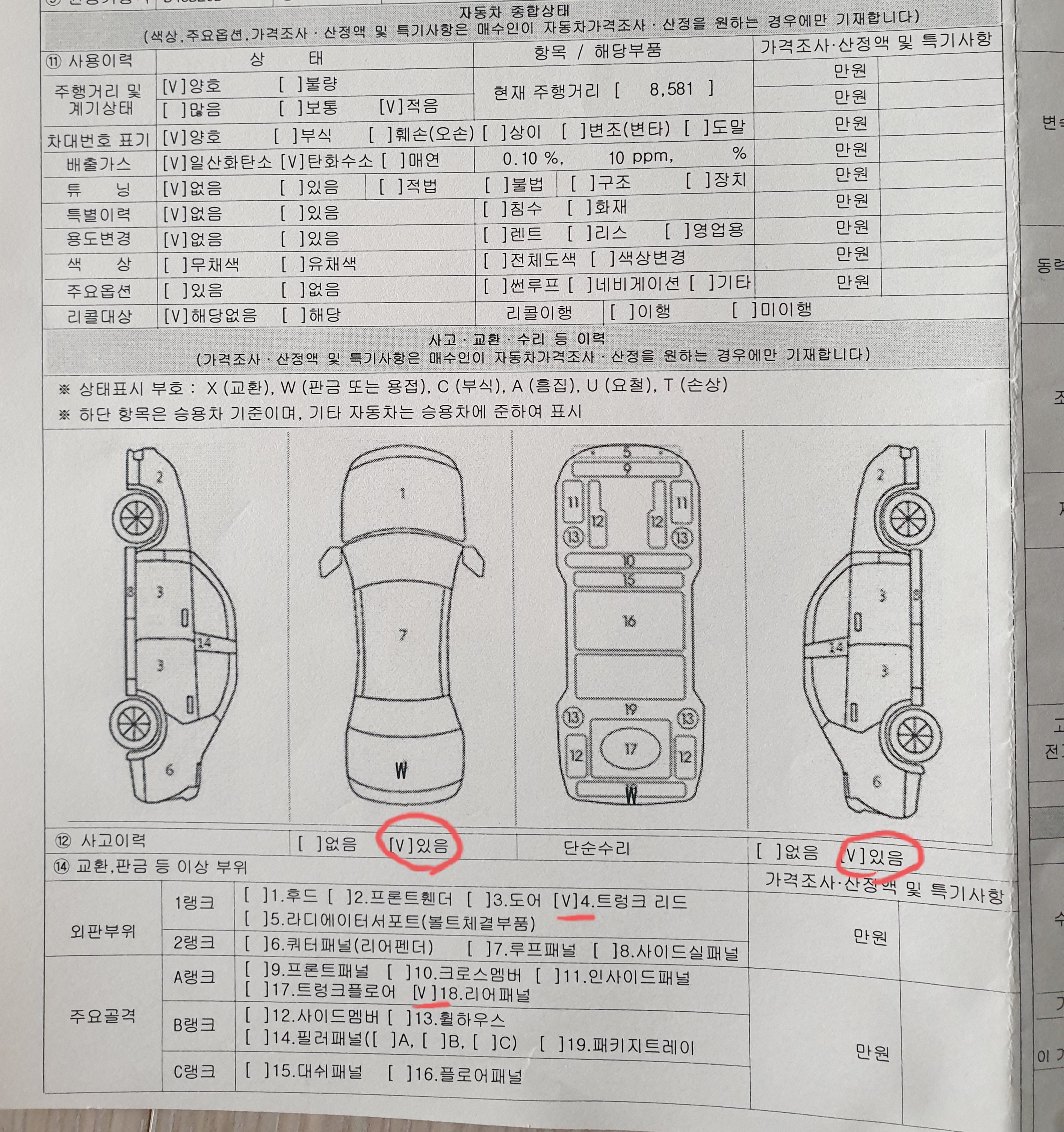 무사고에서 유사고가 되었고 판금 부분도 없다고 되어있는데