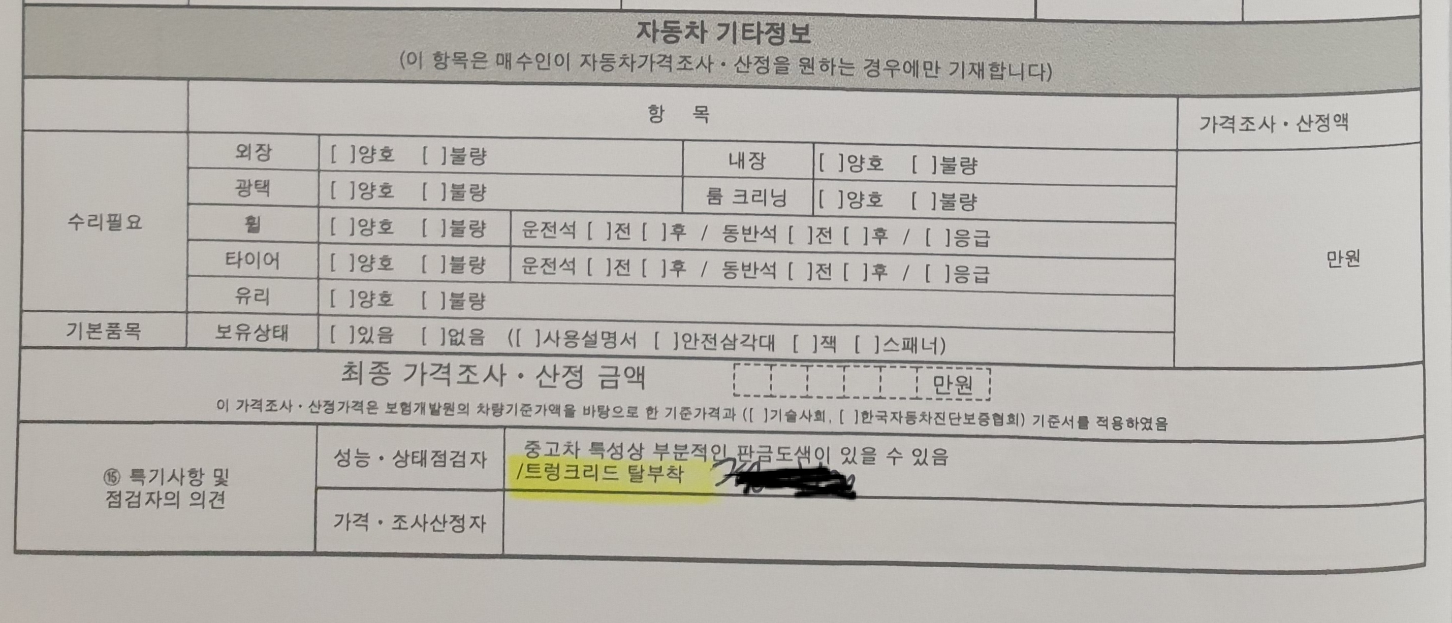 최초 성능기록부에 '중고차 특성상 부분적인 판금도색이 있을수 있음' '트렁크리드 탈부착' 이렇게 써있기 때문에 다 고지된걸로 판단하더군요.
