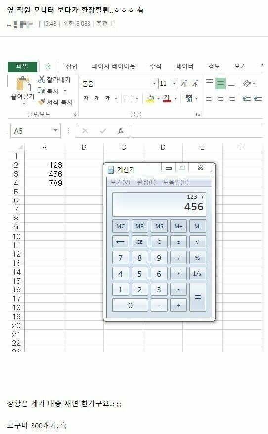 작성자용룡이 작성시간 21.07.23 계산기를 어떻게 믿어요. 손으로 직접 계산 해야지 근거가 남죠.