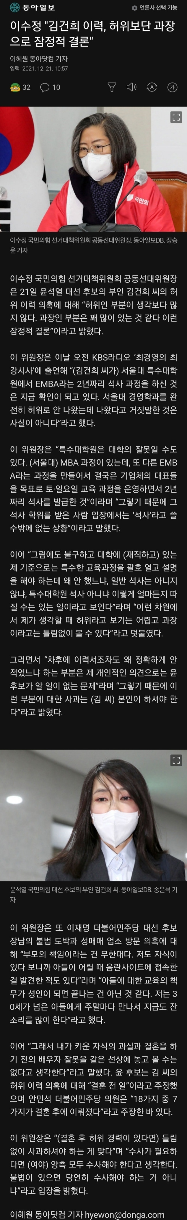 김건희씨는 '허위보단 과장'으로 잠정적 결론이라뇨?