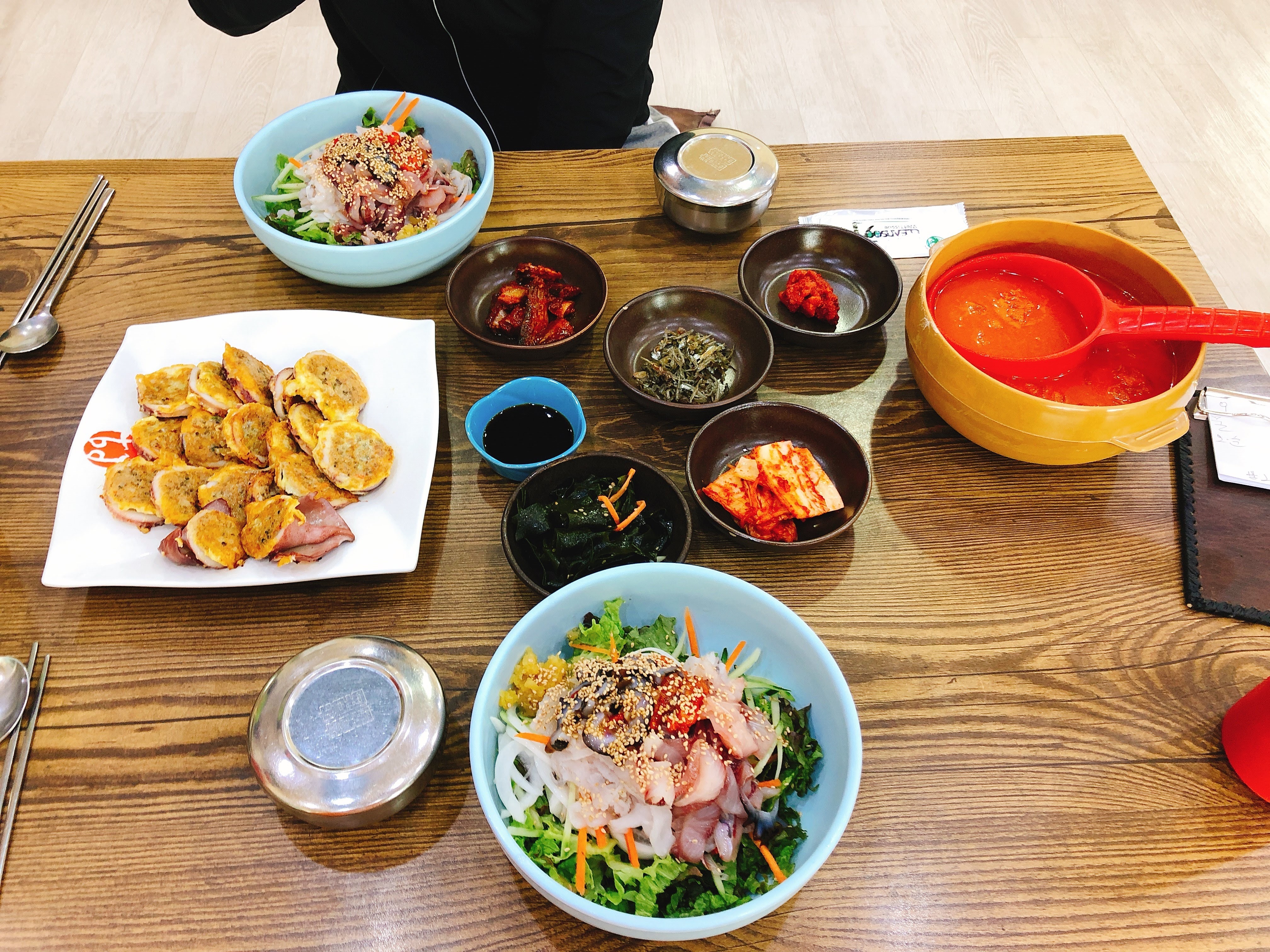 마지막 목적지로 향하기 전에, 아침밥을 든든히 먹고 출발합니다. 물회이랑 오징어 순대인데, 오징어순대가 맛있네요 ㅎㅎㅎ