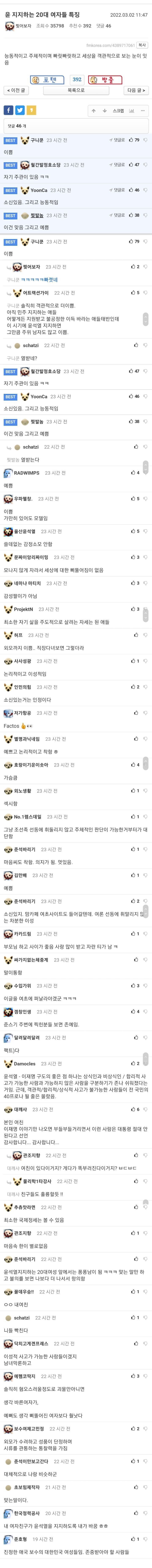 작성자64화음 방구 작성시간 22.03.04 윤 지지하는 여자들이 다 감동란같은줄 아나봄
