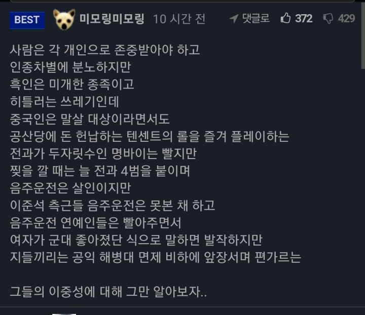 에펨코리아의 이념요약. 작성자懶魔|작성시간22.09.24|조회수3,079 목록 댓글 17 글자크기 작게가 글자크기 크게가 욕설이 없는데 욕설같네요 다음검색 현재 게시글 추가 기능 열기 북마크 공유하기 신고 센터로 신고 댓글 댓글 17 댓글쓰기 답글쓰기 댓글 리스트 답댓글 작성자정대만 | 작성시간 22.09.24 농알못입니당 맞습니다 ㅎㅎ 작성자무한의 주인 | 작성시간 22.09.25 어… 기시감이야??? 작성자김꾼대 | 작성시간 22.09.25 좋아요수가 놀라운데요? 작성자StethosCopes | 작성시간 22.09.25 전과 4범 찢잼… 전과 4범 찢 얘기 좀 그만 했으면 좋겠네요. 답댓글 작성자懶魔 작성자 본인 여부 작성자 | 작성시간 22.09.25 개가 똥을 끊는게 더 빠를듯 댓글 전체보기