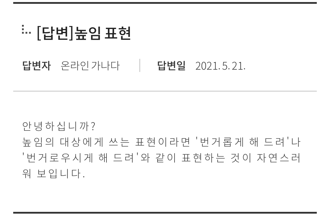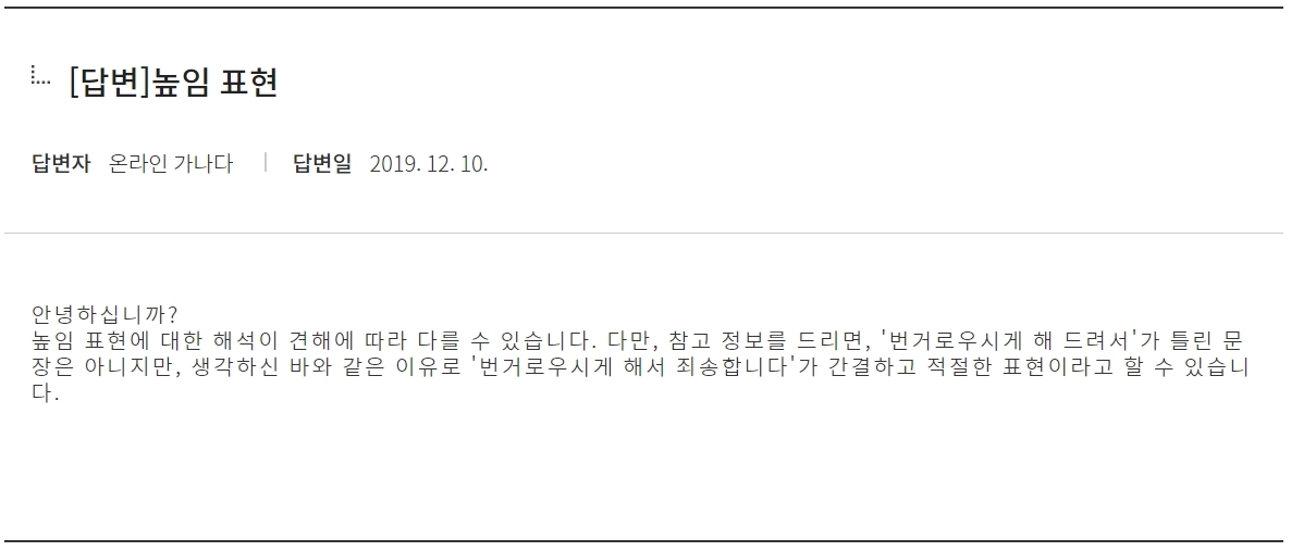 “번거롭게 해드려서 죄송합니다” vs “번거롭게 해서 죄송합니다.”