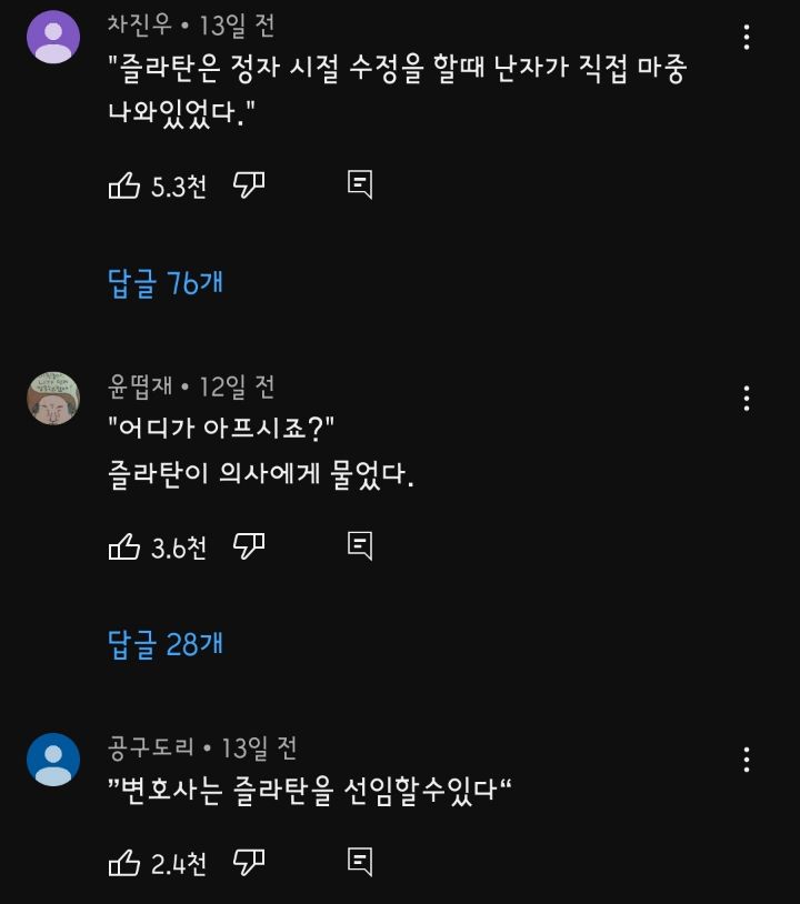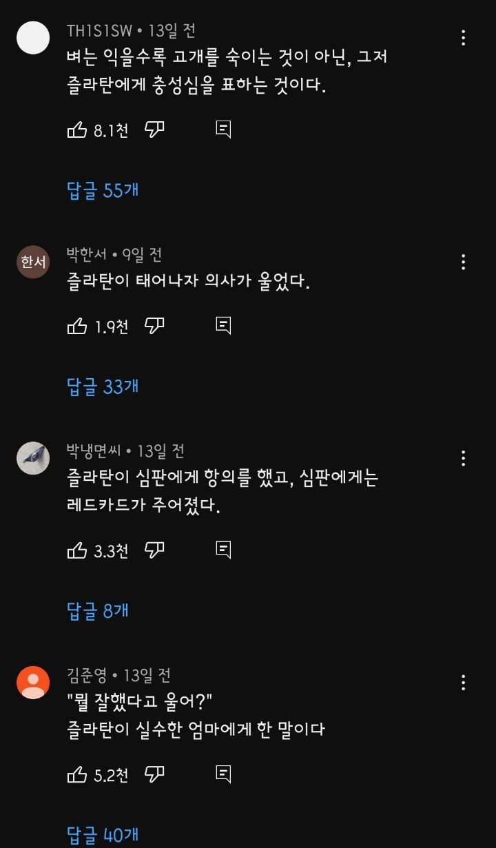 [스크랩] 요즘 핫한 즐라탄밈 유튜브댓글모음 2탄 작성자Melo|작성시간23.02.15|조회수10,069 목록 댓글 4 글자크기 작게가 글자크기 크게가 https://youtube.com/shorts/LuTjm-eDnCI?feature=share즐라탄이 중국을 거절한 이유#shortswww.youtube.comhttps://youtu.be/rWNkECkNIWQ 다음검색 스크랩 원문 : 樂soccer 현재 게시글 추가 기능 열기 북마크 공유하기 신고 센터로 신고 댓글 댓글 4 댓글쓰기 답글쓰기 댓글 리스트 작성자멋찐켄신 | 작성시간 23.02.15 수정드립은 너무 웃겨요ㅋㅋㅋㅋ 답댓글 작성자쟤시켜알바 | 작성시간 23.02.15 이거랑 기린이요ㅋㅋㅋ 작성자No.manner | 작성시간 23.02.15 난자가 마중나왔다 ㅋㅋㅋㅋㅋㅋㅋ 작성자할수있다 | 작성시간 23.02.15 ㅋㅋㅋㅋㅋㅋㅋㅋㅋ 꿀잼 댓글 전체보기
