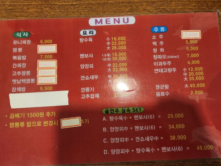 메뉴판을 좀 허접하게 찍었네요 ㅋㅋ
