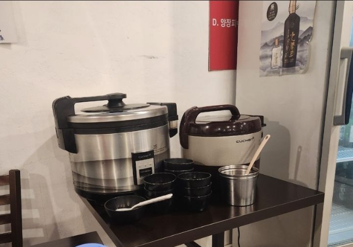 구석엔 밥과 계란국이 준비되어 있습니다.