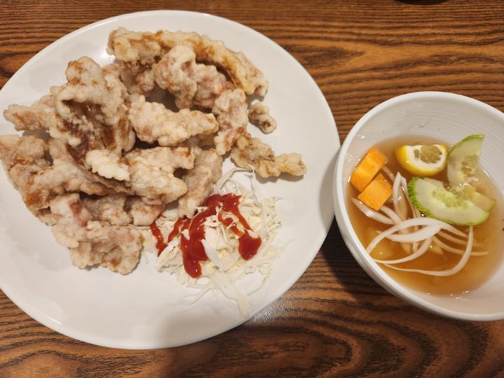 튀김옷에 간이 좀 돼있어서 소스 살짝 찍어 드시는것을 추천드립니다. 그냥 먹어도 맛있습니다.