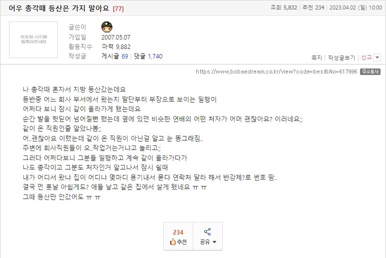 요약 : 등산 혼자가다 결혼함