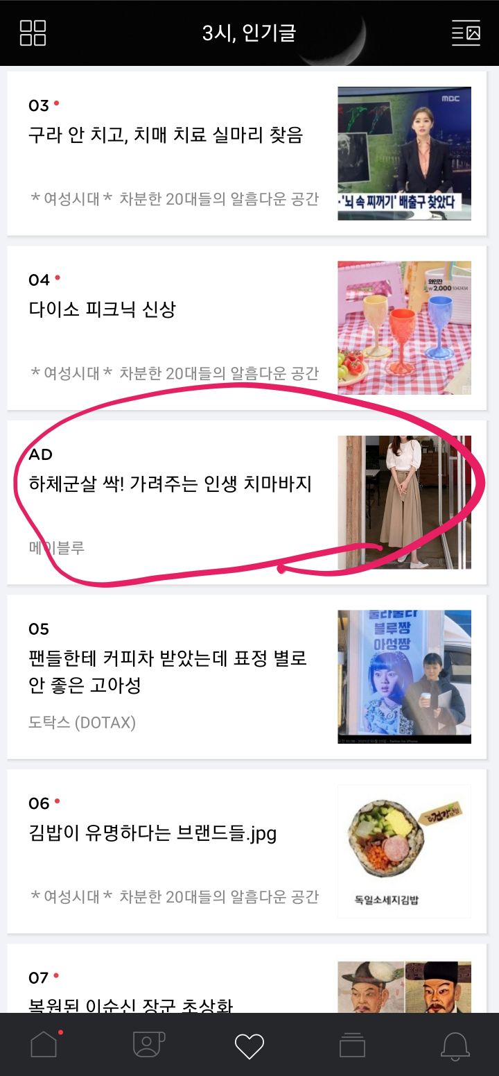 인기글에 있던 광고가 사라지고