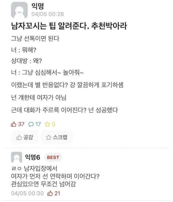 이러고 답 밍숭맹숭하면 망한거임 ㅋ -