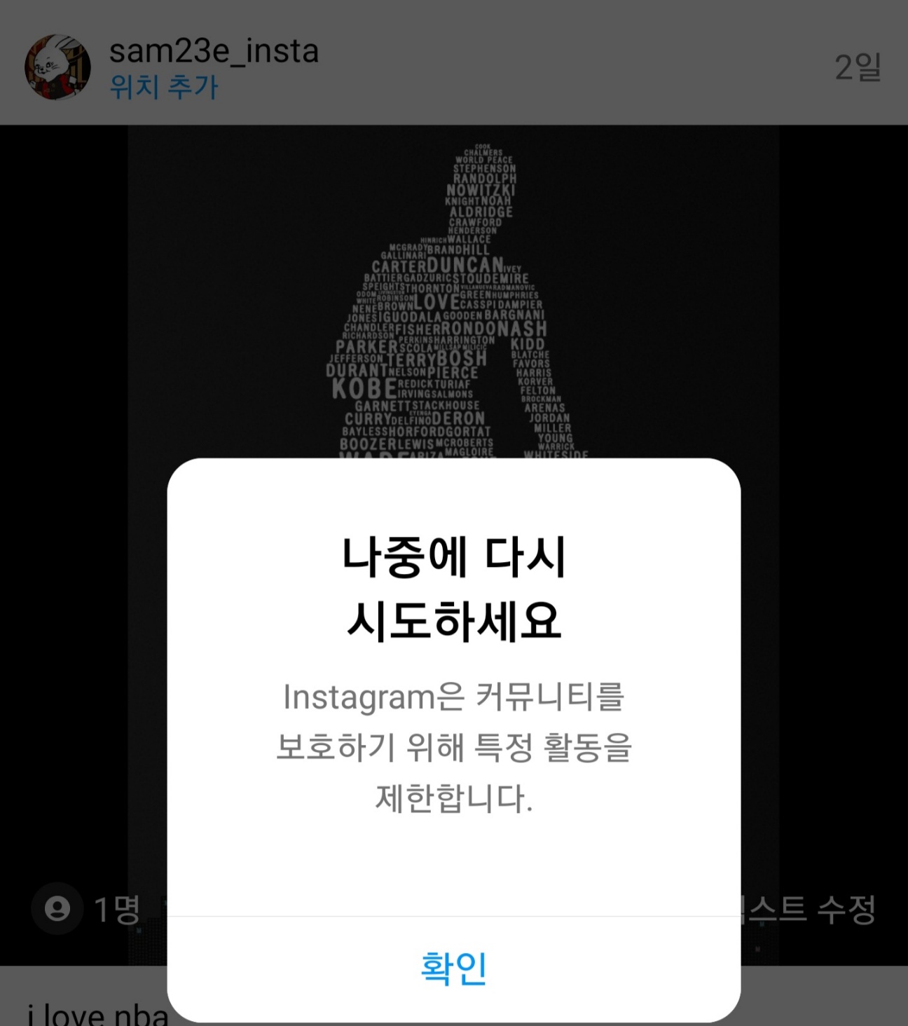 모든 태그가 안되는건 아니고 위 이미지에서처럼 fc서울이나 nba 계정등을 추가하려고하면 경고창이뜹니다.