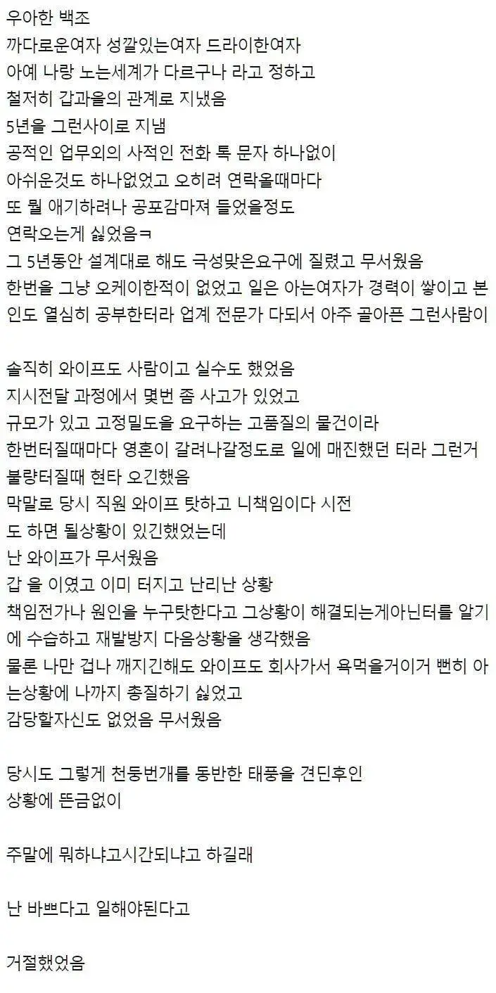 작성자드르브스 작성시간 23.07.20 저는 생각보다 감동적을 글을읽었는데.. 남자분도 여자분도 대단한 부분들이 많네요 ㅎㅎ