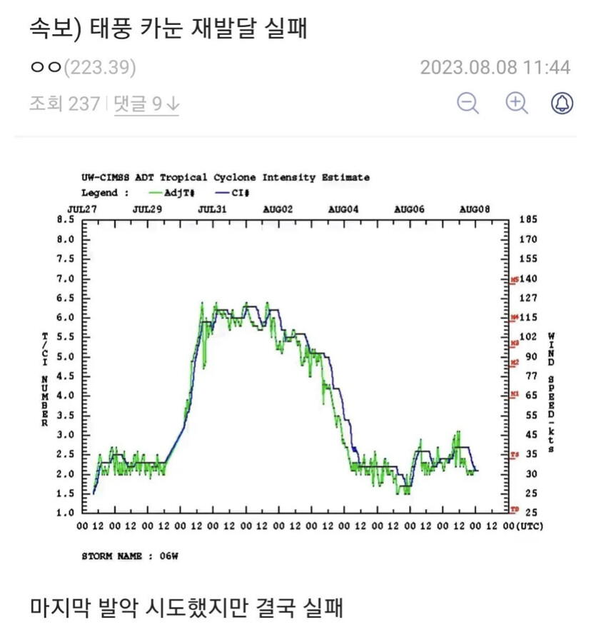 작성자농구좋아ㅎ 작성시간 23.08.10 뉴스 장면을 보면 생각(?)보다 약해요. 더 약해져서 피해 없기를