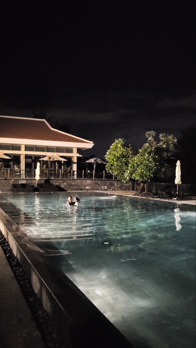 야간에 수영할 수 있어서 딸과 함께 즐거운 야간수영도 했습니다.