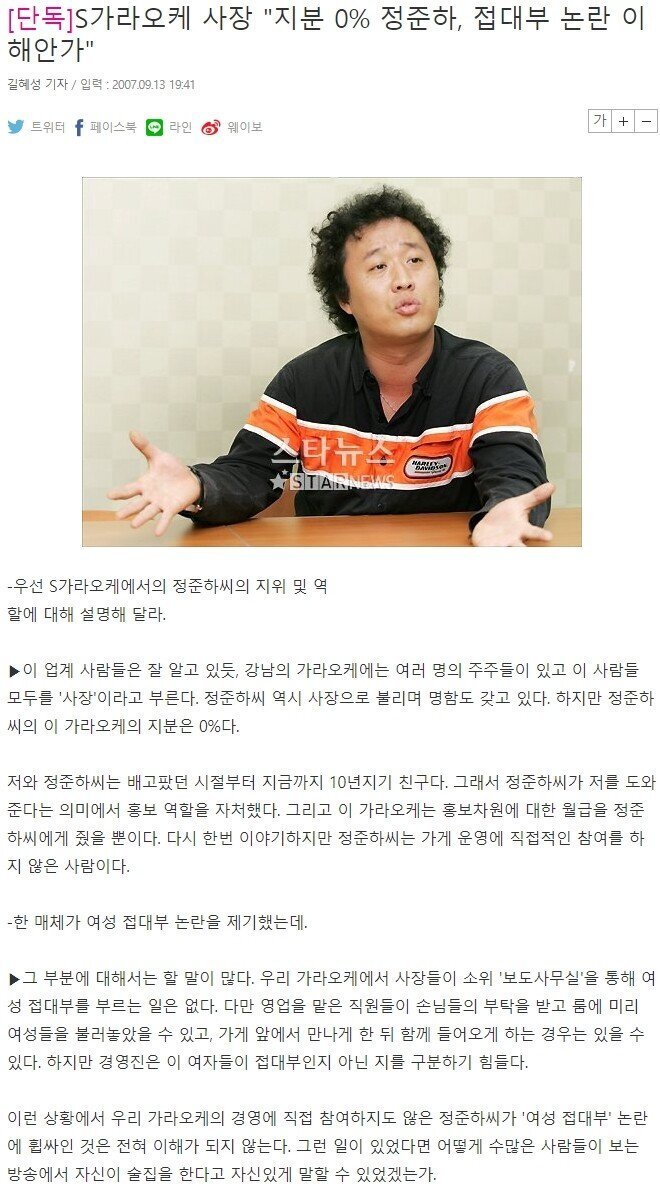 당시 꽤나 크게 논란이 일었던 정준하 가라오케 포주 사건..