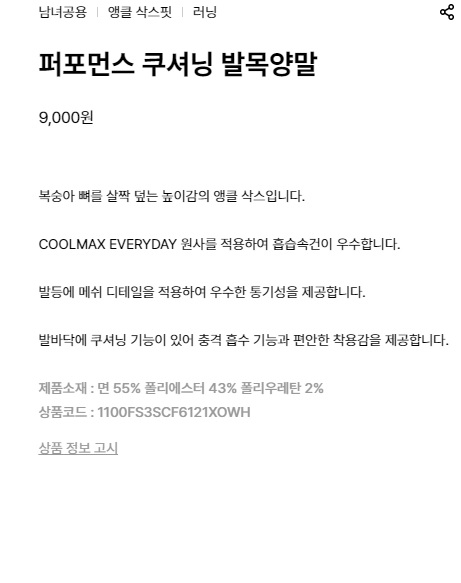 단순히 스포츠용 양말이나 러닝이라고 이름 붙어있는 녀셕들을 구매하면 안됩니다.