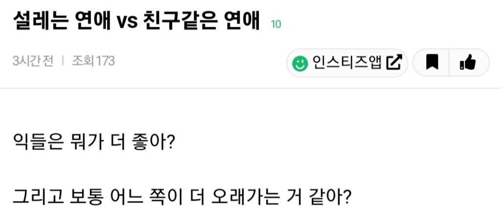 [스크랩] 설레는 연애vs친구같은 연애 작성자Jason-Kidd|작성시간23.11.04|조회수1,999 목록 댓글 16 글자크기 작게가 글자크기 크게가 출처 인스티즈 다음검색 스크랩 원문 : 도탁스 (DOTAX) 현재 게시글 추가 기능 열기 북마크 공유하기 신고 센터로 신고 댓글 댓글 16 댓글쓰기 답글쓰기 댓글 리스트 작성자김꾼대 | 작성시간 23.11.04 애초에 설레야 시작이 가능하고 그러다가 친구되는거죠 뭐 작성자Reichwooks | 작성시간 23.11.04 친구같아져야 오래가죠 작성자내가 아주 큰 실수를 할뻔했어 | 작성시간 23.11.04 맨날 설레면 심장병 옵니다 답댓글 작성자인생이다그런 | 작성시간 23.11.04 22222 죽어요. 작성자모르는사람 | 작성시간 23.11.04 둘 다 모르는데요😑 댓글 전체보기