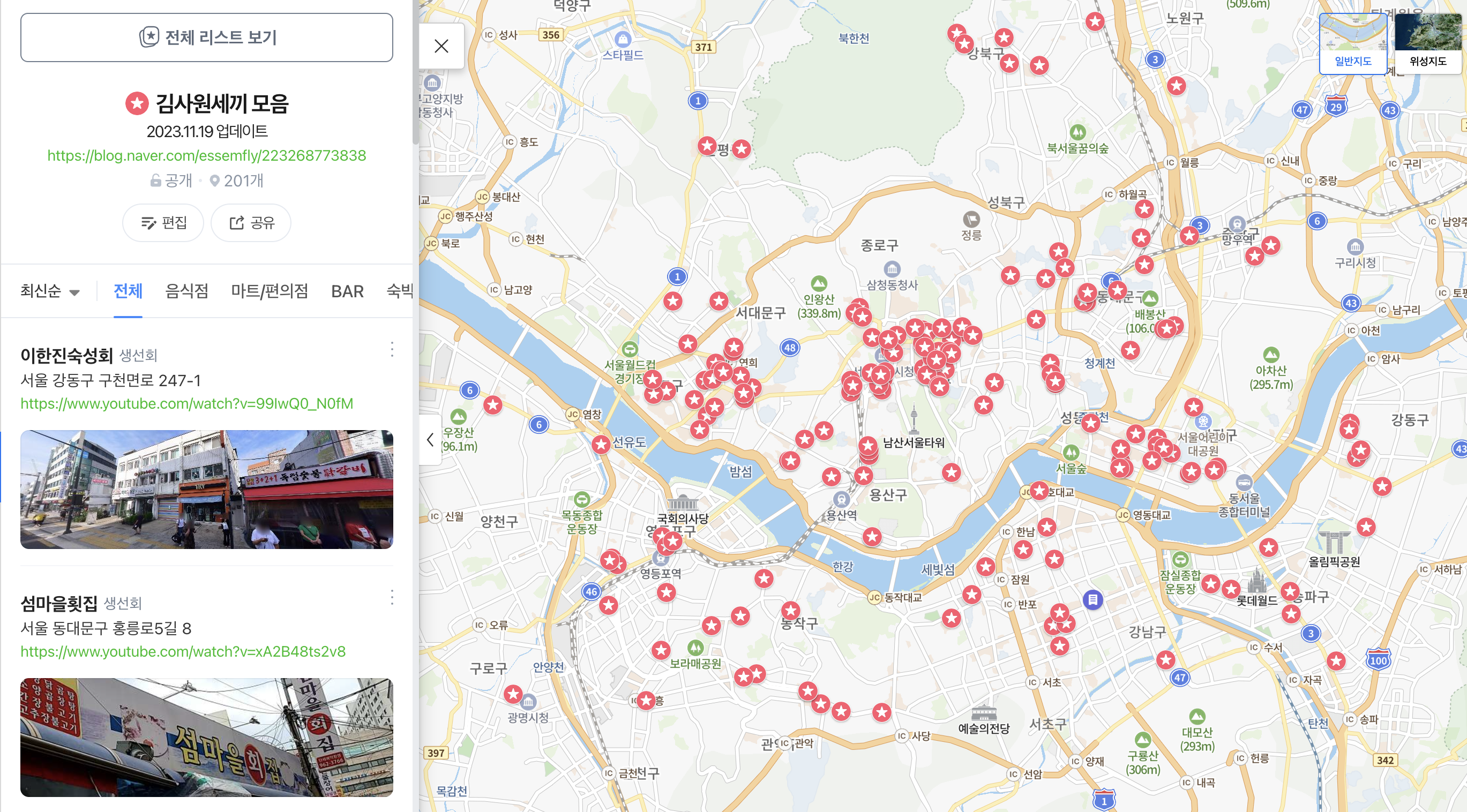 혹시 보시는 맛집 블로그나, 맛집 유튜버들 중에 이런 리스트 만들었으면 좋겠는 것 있으시면