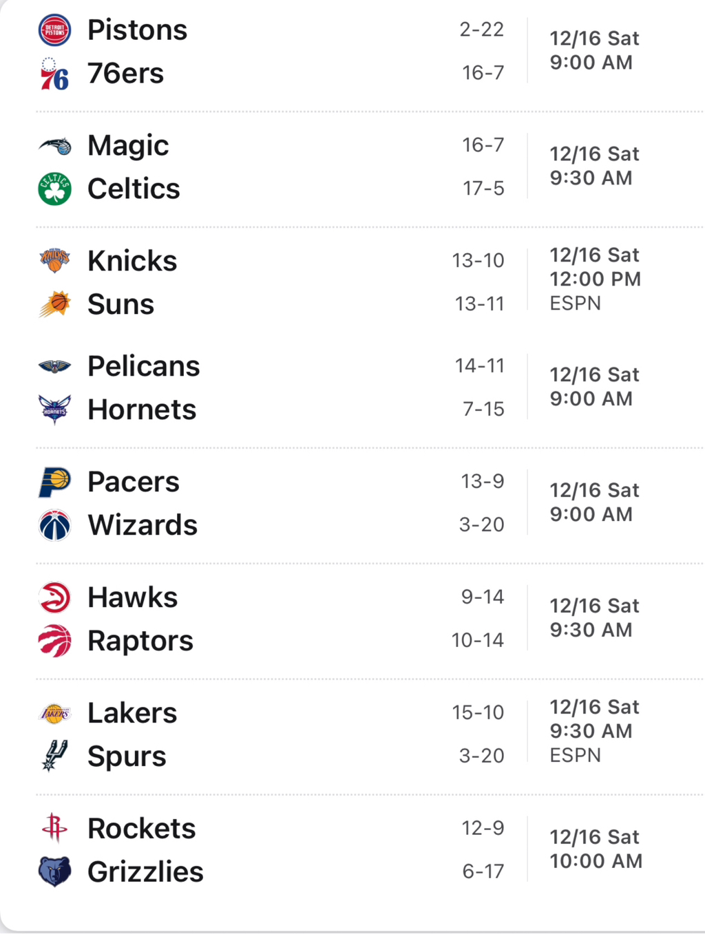 내일 NBA 경기 일정 (총 8경기)