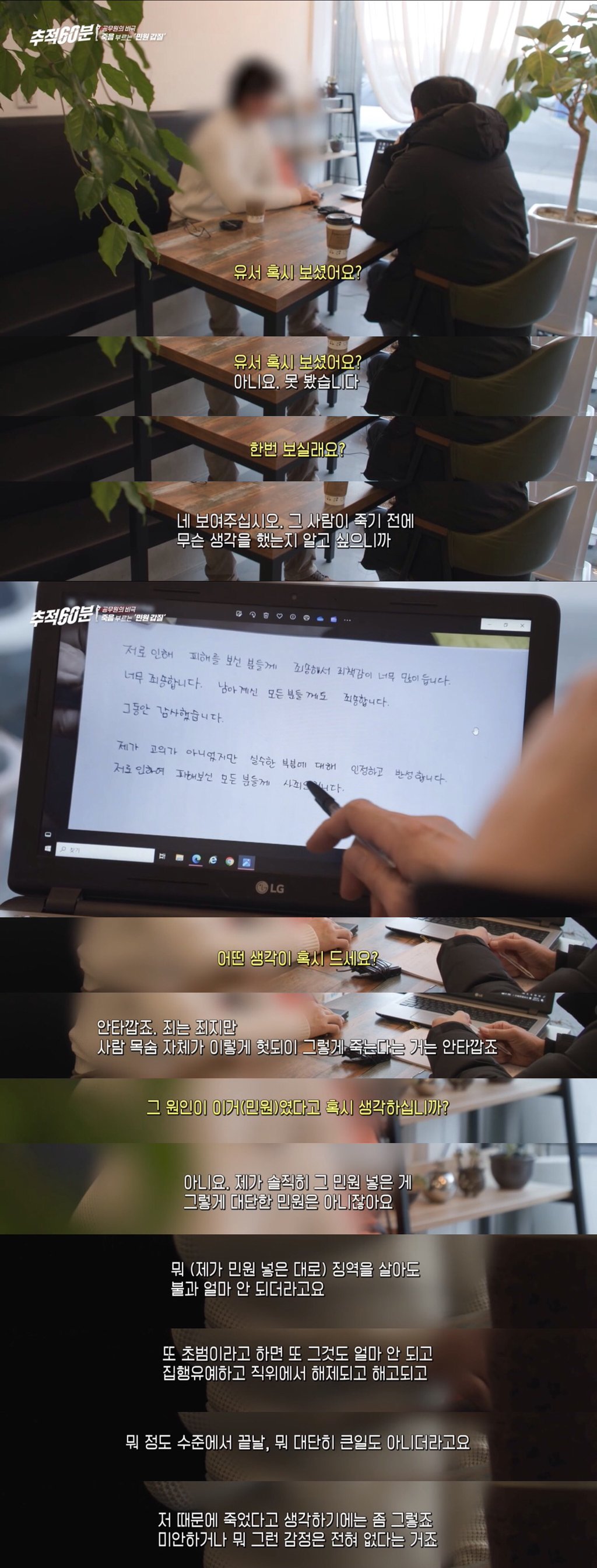 민원인과 동료들에게는 죄송하다는 유서를 남겼다.