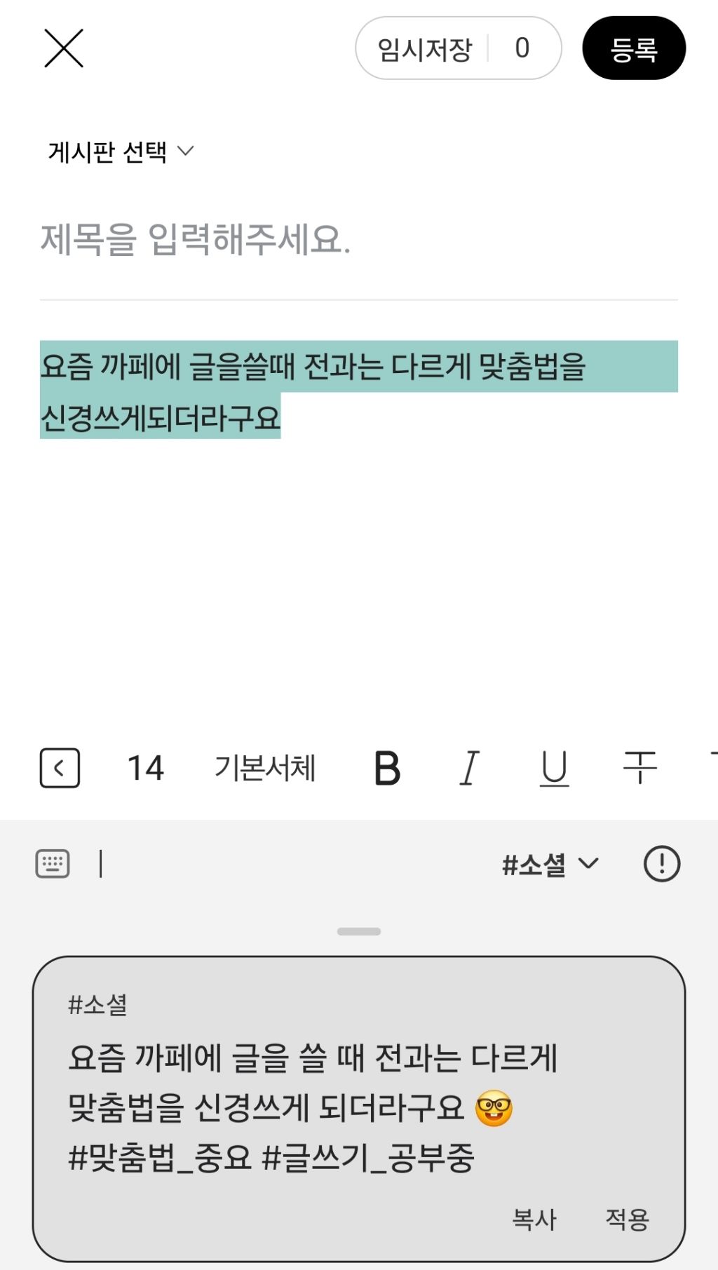 단점은 글을 적을 때 스스로 띄어쓰기를 안하게 됨