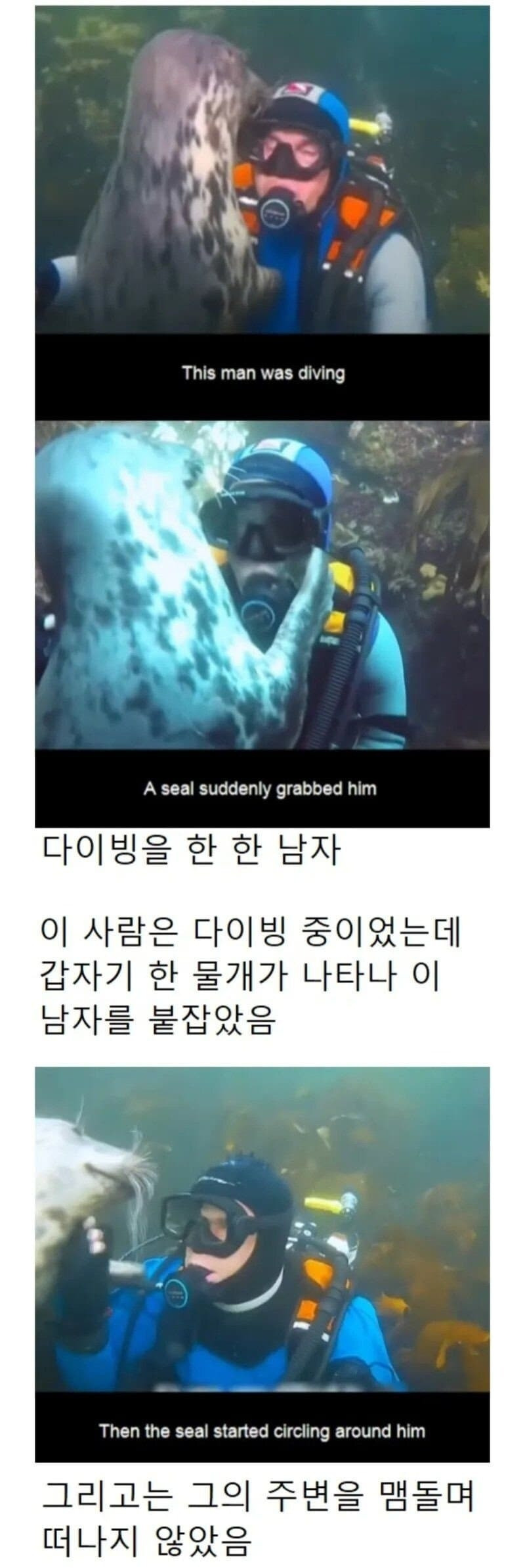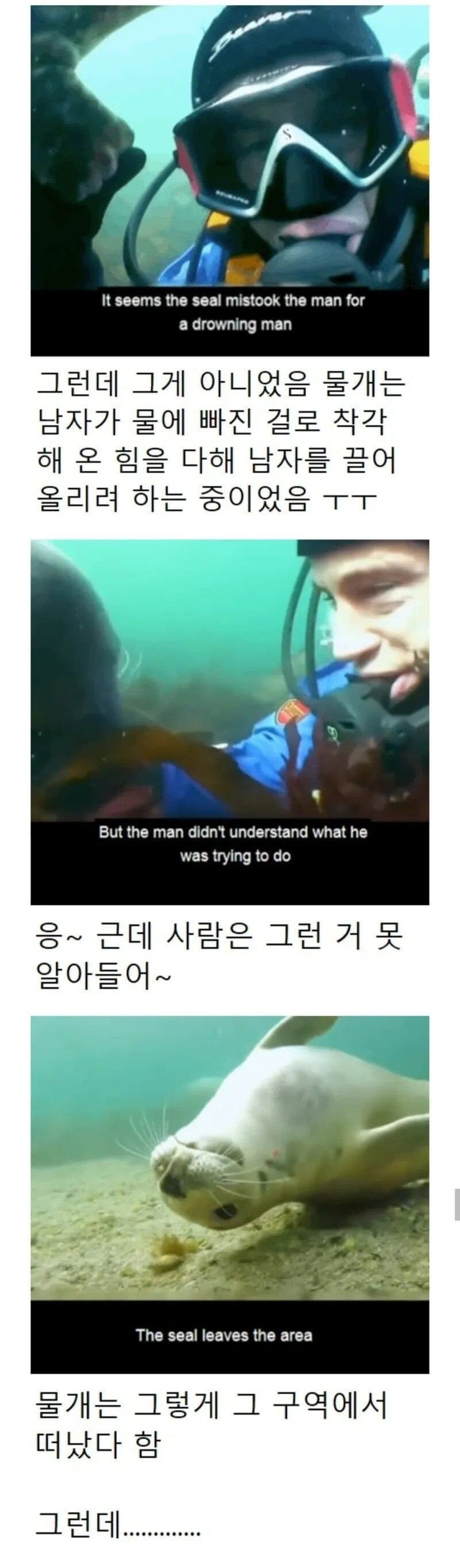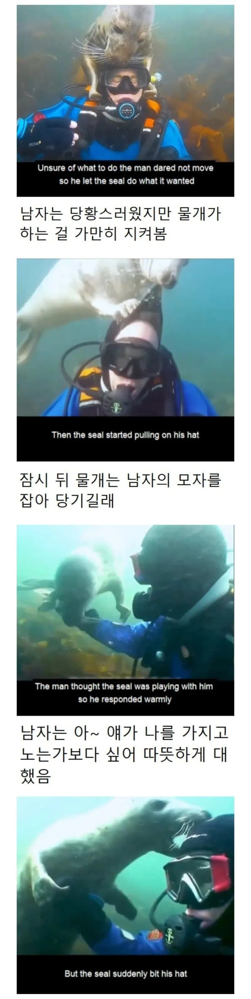 작성자디트와 함께 춤을 작성시간 24.08.19 물개는 인간을 도우면 자기생존에 이득이 있는지 아는 걸까요? 신기하네요.