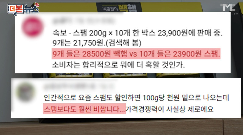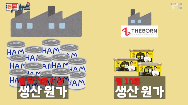 A : 스팸의 대량생산구조에비해 밀리때문에 생산단가가 높아서 금액차이가 얼마 안났다