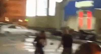 러시아 쇼핑센터 앞에서 슬라브 덩치 무리와