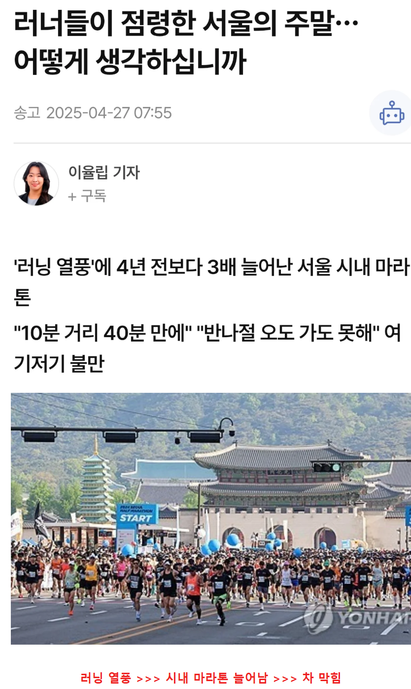 작성자10cm 점프 작성시간 25.04.28 일요일마다 광화문쪽을 지나갈 일이 있는데 이거때문에 불편이 이만저만이 아닙니다 ㅠㅠ