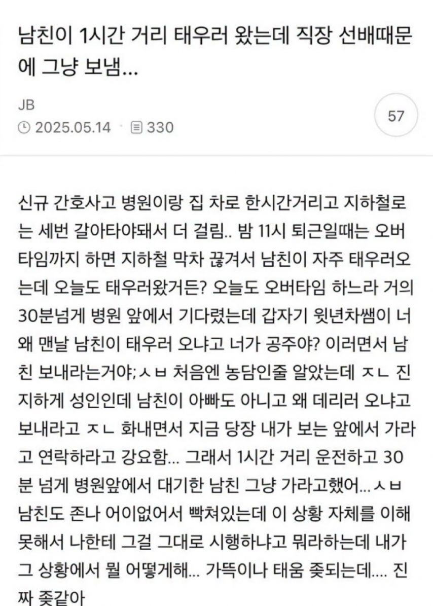 [스크랩] [클릭주의]직장선배가 남친 그냥 보내라고 화냄 작성자Jason-Kidd|작성시간25.05.22|조회수2,372 목록 댓글 9 글자크기 작게가 글자크기 크게가 다음검색 스크랩 원문 : 도탁스 (DOTAX) 현재 게시글 추가 기능 열기 북마크 공유하기 신고 센터로 신고 댓글 댓글 9 댓글쓰기 답글쓰기 댓글 리스트 작성자패쇼니스타 | 작성시간 25.05.22 역시 태움.. 답댓글 작성자얼음귀공자 | 작성시간 25.05.22 222 작성자MJ.DW.DR.BG.DM | 작성시간 25.05.23 이미지 확대 작성자요호부민 | 작성시간 25.05.23 보는 앞에서 가라는 건 뭐야 ㅋㅋㅋㅋㅋㅋ 답댓글 작성자슈발리에 | 작성시간 25.05.24 본인이 그런 남친 없어서 질투하는 거 아닐까요?? 댓글 전체보기