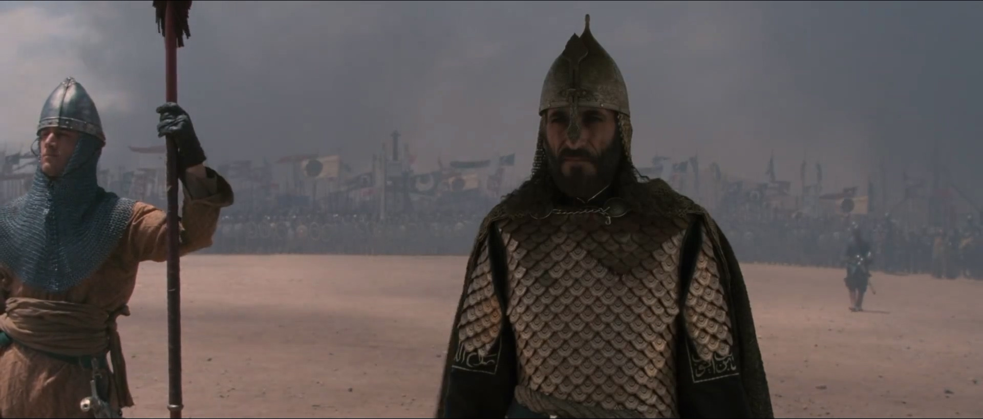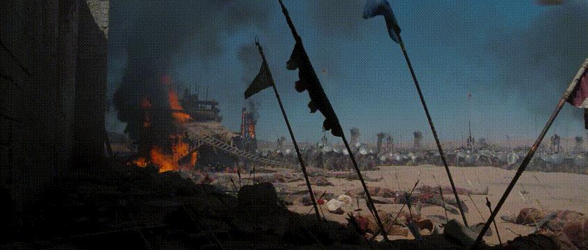 살라딘 군대의 깃발과 천막이 보인다