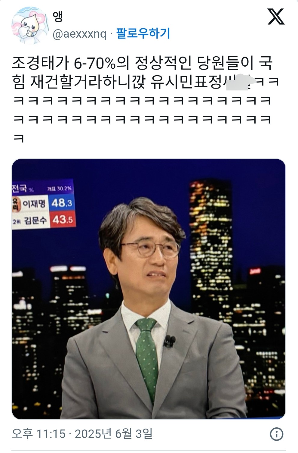 작성자rythm nation 작성시간 25.06.04 정상적인 당원에서 웃을게 아니라 저런 소리가 아예