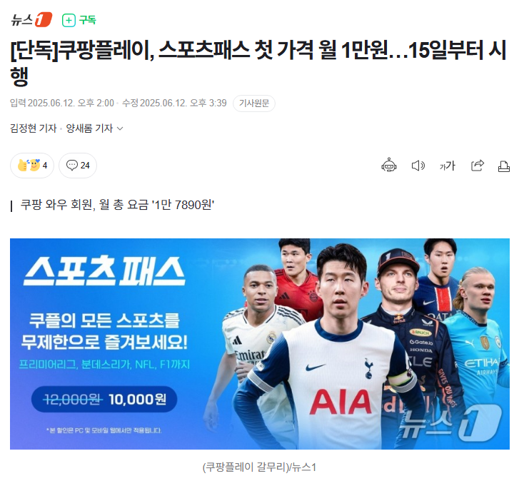 쿠팡플레이 관계자는 "해당 가격 정보는 사실과 다르며, 스포츠 패스의 공식 가격 및 세부 내용은 추후 쿠팡플레이를 통해 정확히 안내드릴 예정"이라고 말했다.
