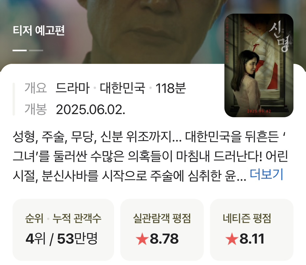 작성자흑비 작성시간 25.06.16 요거는 솔직히 영화로 보면 안된다고 봅니다 그냥 내란종식을 위한 홍보쯤으로 봐야하지 않을지 제작기간이 3개월도 안되었다고 들었는데
