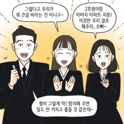 작성자▶◀Justice 작성시간 25.06.16 돈 앞에 핏줄 없습니다. 전 절대 저렇게 안 살거고요. 멀리 갈 것도 없어요. 외가 친가. 그 더러운 꼴 숱하게 봐왔습니다. 콩 한쪽도 나눠먹으라는 아버지 말씀 가슴에 새기고 동생과 지금까지 그 어느 형제보다 우애있게 살고 있어요. 앞으로도 그럴거고요.