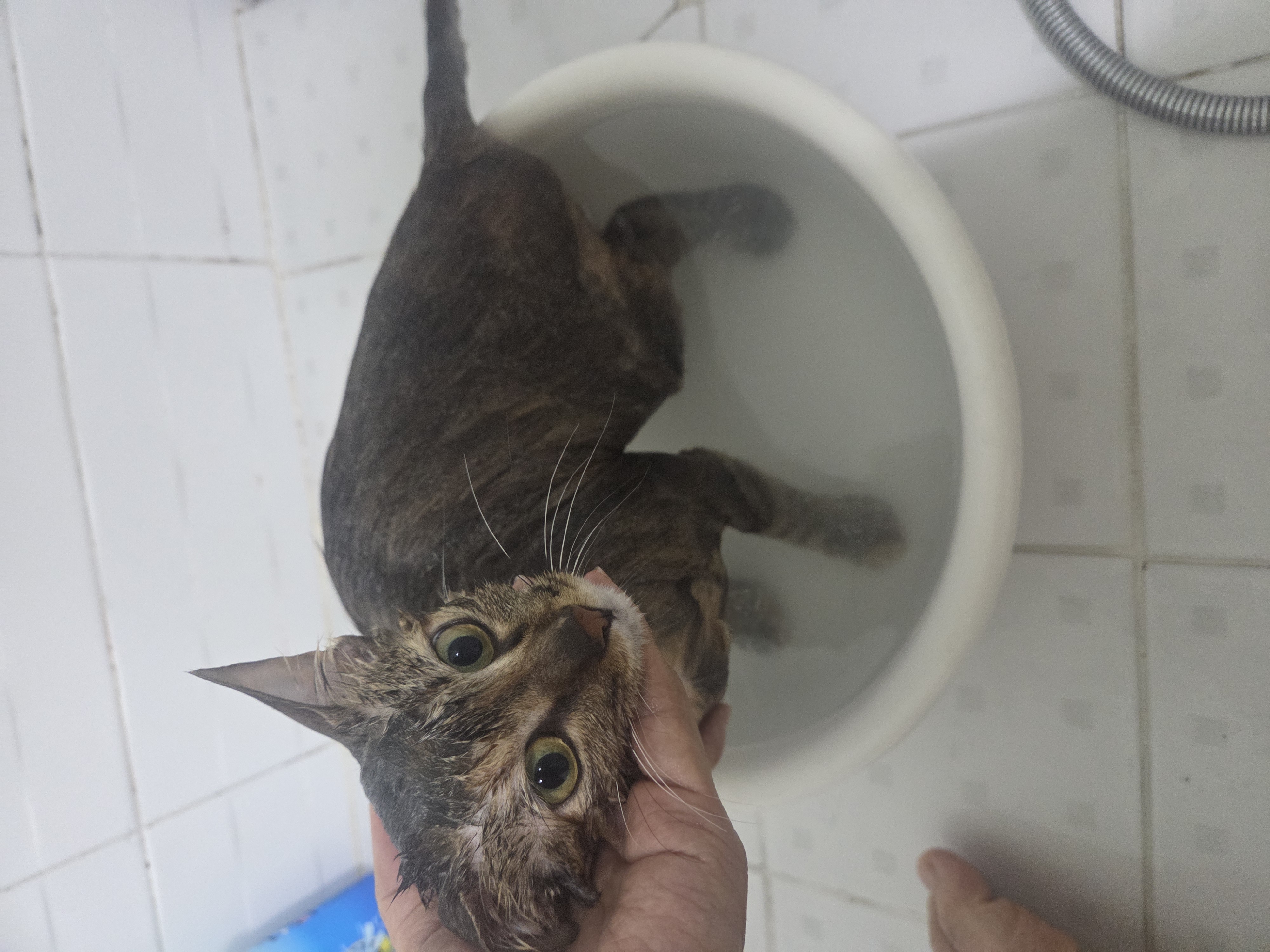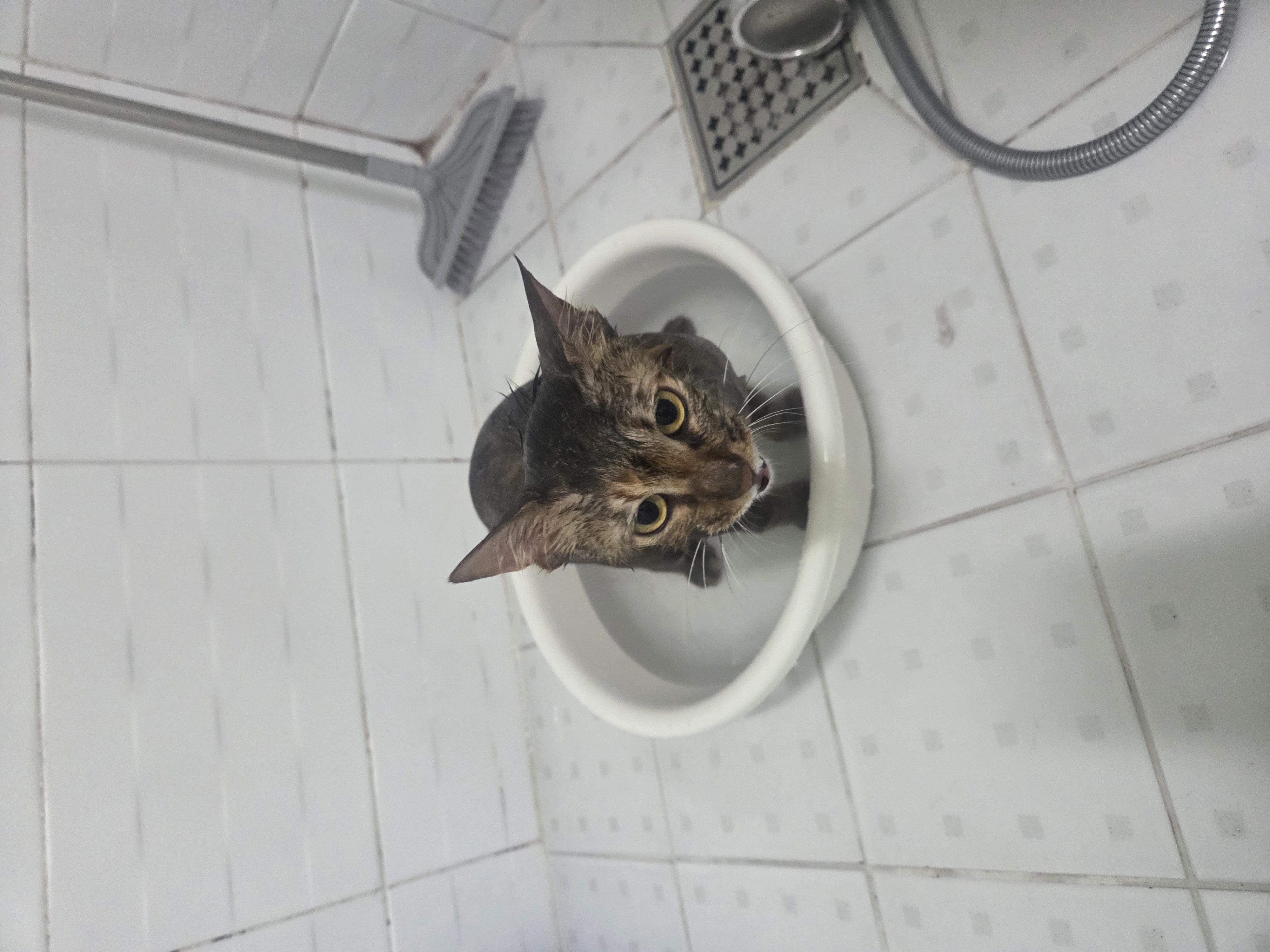 오늘 첫 목욕시켰는데 조금만 야옹했지 물 안에 가만히 있고 잘 협조해줬네요